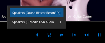 Just like ventriloquists do, the app can switch from one soundcard to another, even during playback (as of this writing, only one device can be active at the time).